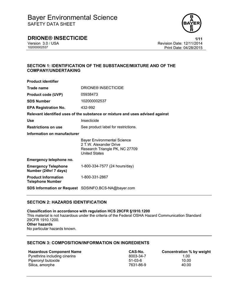 Bayer Environmental Science Material Safety Data Sheet Reserve Fungicide Manualzz